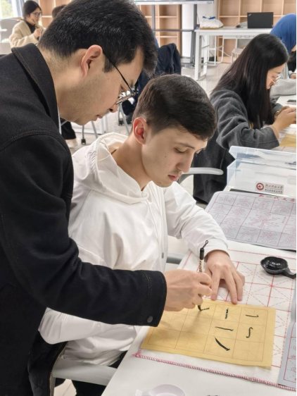 本网讯(通讯员 高杨舒/文 刘超 熊小艳 杨凡 陈蔚 肖倩 雷楹 常凯源 肖莉山/图)11月16日至22日,为进一步深化与“一带一路”沿线国家之间的教育文化互鉴,增进中外学子之间的交流和沟通,让国际学生亲身体验中国的独特魅力与文化精髓,我校举办了为期一周的中亚国际学生文化体验营。来自乌兹别克斯坦、塔吉克斯坦的10名国际学生,走进各学院与大学生活动中心,体验人工智能与智能制造科技,感受茶艺、书法、武术、蓝染等传统文化,参观校外实践教学基地湖北省博物馆等著名景点,与我校学子共同触摸中国的科技与文化脉搏,共同描绘跨国界的友谊与智慧结晶。