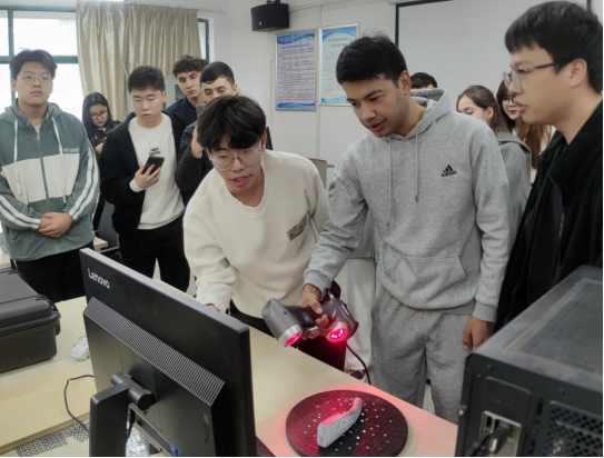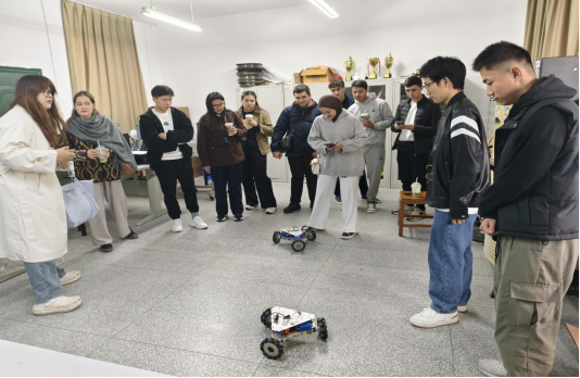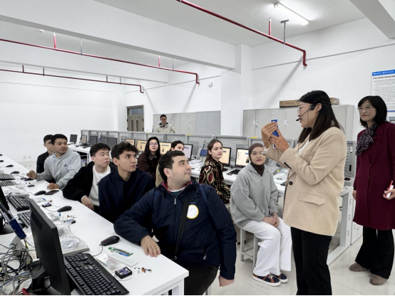 在人工智能学院,国际学生参观了鲲鹏产业学院文化长廊,了解人工智能技术的强大魅力和广泛应用前景,大家积极提问,并纷纷驻足拍照留念,现场气氛热烈。在软件工程学院,他们体验了“智能楼道灯”的模拟小制作,在老师的指导下亲手将电子元件插入面包板,成功制作了光控开关,无不感叹科技创新的神奇与魅力。在机电工程学院,他们亲自操作机器人,体验逆向扫描、电工接线、工业机器人操控,参观智能产线,感受石油钻井采油技术。他们表示,这些体验活动拓宽了他们的科技视野,感受到了在中国智能制造技术的广泛应用和深远影响。机电工程学院的老师和同学,还为国际学生展示了古琴和武术,为活动增添了一抹亮色。