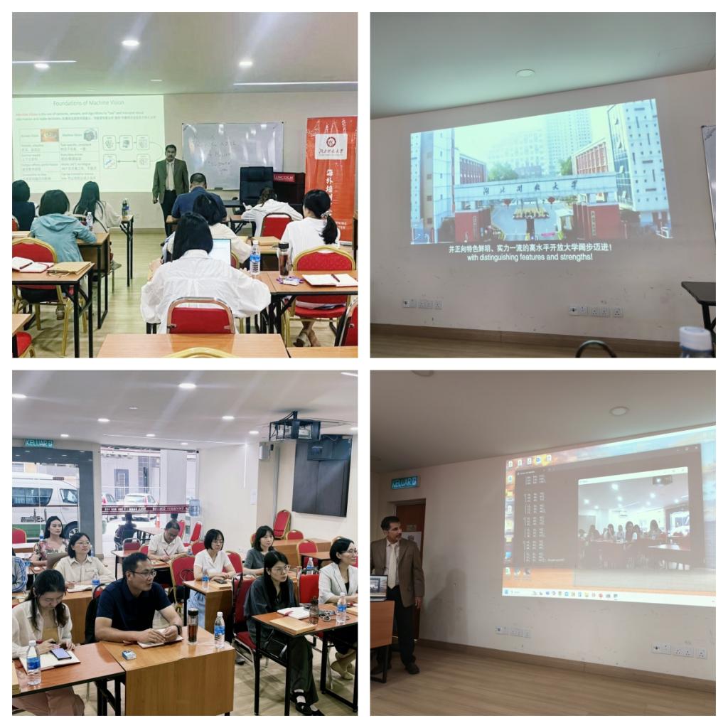 研修期间,我校教师代表团与两所高校就课程体系优化、学生创新能力培养等议题进行了深入探讨。双方均表达了强烈的合作意愿,期待未来能在教育与文化交流领域迈上新台阶。参训教师纷纷表示此行收获巨大。人工智能学院尹淑玲教授感言:“Dinesh博士的代码演示让我们对AI的理解从概念深入到了应用,极具启发性。”人文管理学院副院长肖畅则表示:“Zuraidah副教授的课堂让我们真正体验到了‘学中乐,乐中学’的乐趣,也让我看到了文化自信在国际交流中的独特魅力。”
