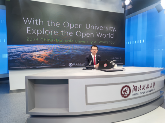 本网讯(通讯员 沈文捷 高杨舒 文/图)12月13日,我校海外学习(培训)中心向马来西亚计算机科学与工程大学的师生开展了“中马人工智能交融大课堂”培训。学校软件工程学院田野博士在湖北开放大学全景演播室对来自马来西亚的师生进行了授课与研讨。学校外事处、马来西亚计算机科学与工程大学师生参与了学习与观摩。