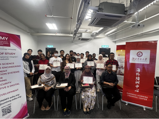 本场培训研讨不仅让中马师生们对人工智能有了更深入的了解,还激发了大家对人工智能领域的兴趣和热情,也让中马双方在人工智能、信息技术等方面进行了沟通与交流。参训学生表示,他们将积极投身于人工智能领域的学习和研究,为推动该领域的发展做出贡献。培训结束后,湖北开放大学海外学习(培训)中心为在场学员颁发培训证书和纪念品,师生共同合影。
