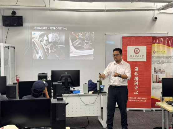 本次培训,马来西亚计算机科学与工程大学Syahril Anuar Bin Idris博士围绕汽车智能驾驶和自动驾驶,为在场学者讲授了汽车自动驾驶和智驾系统的发展与应用。他从汽车智能驾驶技术的发展趋势及前景、机械设计与原理、电控系统和汽车智驾系统等方面与在场学员进行分享,通过讲授,现场学员对智能驾驶技术的应用与发展有了全面、深入的了解,对我校海外学习(培训)中心举办的系列培训活动表示感谢。
